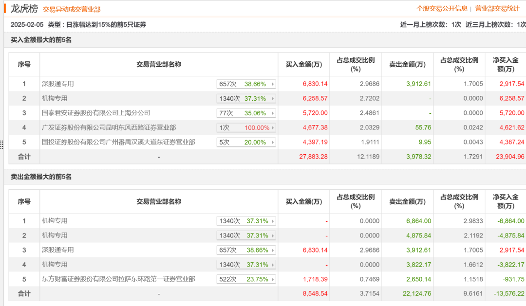不过,从龙虎榜数据看,机构间博弈激烈,有的获利了结,有的乘势买入,操作可谓截然不同。