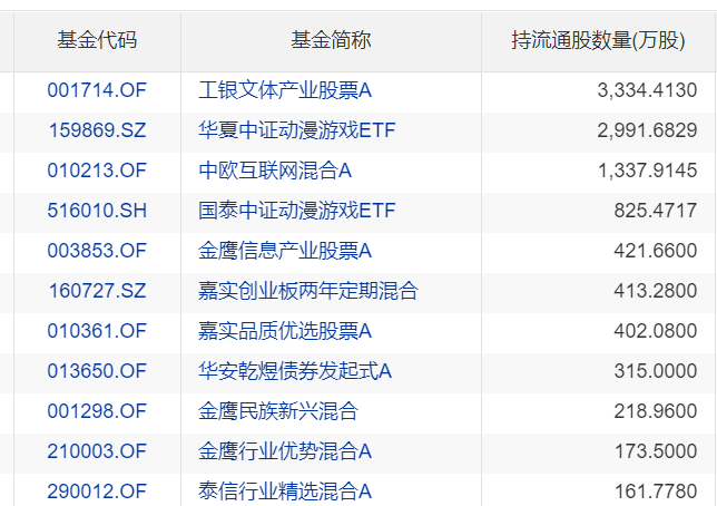 根据基金定期报告披露的数据,截至去年底,共有36只基金重仓持有光线传媒,持股数量合计超过1亿股。具体来看,工银文体产业持有光线传媒3334.41万股。此外,华夏中证动漫游戏etf、中欧互联网混合a持股数量均超过1000万股。