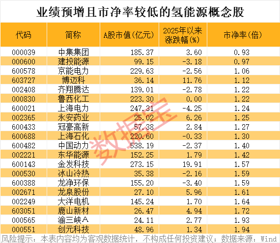 c氢能开发利用全面提速 业绩增长 低pb 低pe概念股揭晓