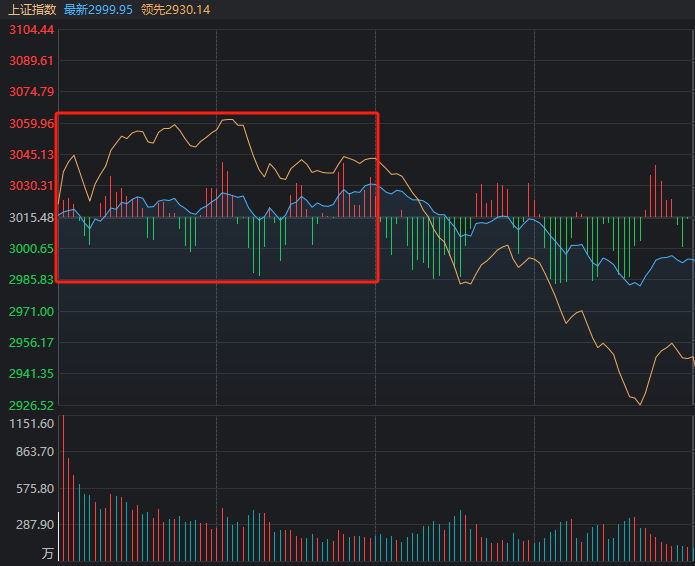 以沪指为例,开盘第1个小时(9:30到10:30),似乎风平浪静。