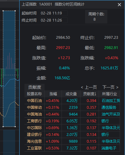 10:30到11:30,指数明显跳水,这也基本确定了今天市场的基调就是震荡 获利了结。