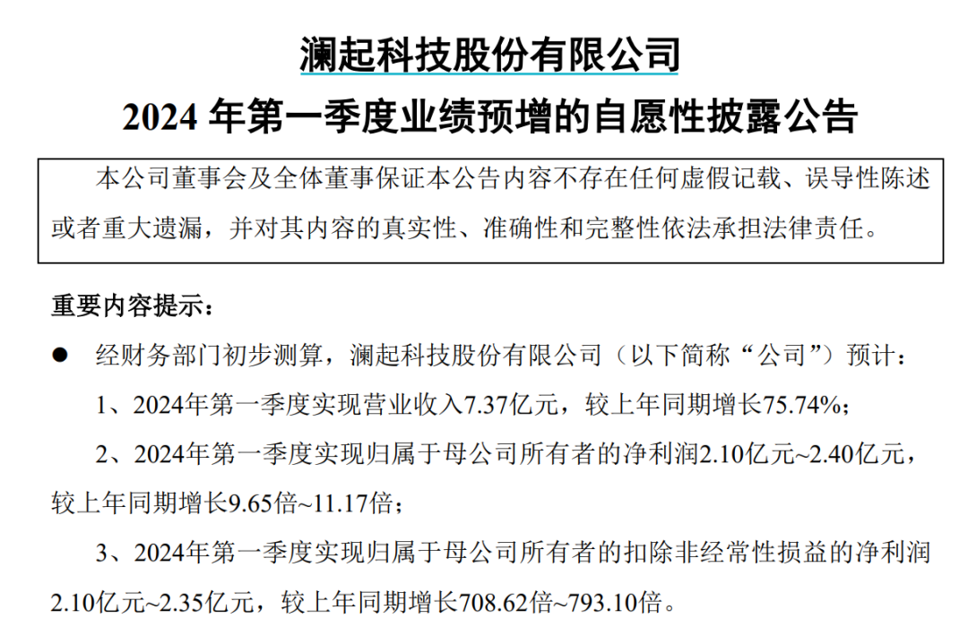 实际上,涨价效果已经反映在存储厂商的业绩上。江波龙披露的最新季报显示,其2024年一季度实现营收44.53亿元,同比增长200.54%;实现净利润3.84亿元,增长236.93%,上年同期江波龙净利润亏损2.8亿元。
