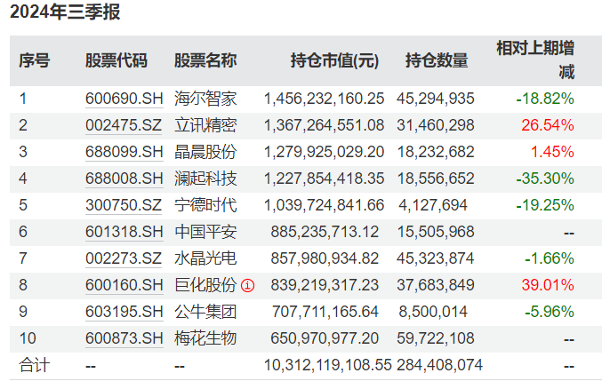 基金三季报持续披露,10月24日晚间,多位知名基金经理的最新持仓浮出水面。