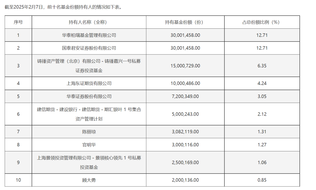 值得一提的是,部分基金管理人大手笔自购,位列旗下etf第一大持有人。例如,根据华泰柏瑞创业板50etf上市交易公告书,截至2月7日,华泰柏瑞基金位列该etf第一大持有人,持有金额为3000万元。类似的还有易方达上证科创板人工智能etf,截至1月17日,易方达基金位列该etf第一大持有人,持有金额为2800万元。