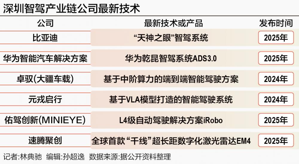 从感知设备到自动驾驶方案,再到实际应用,速腾聚创、元戎启行、佑驾创新等深圳企业已占据行业高地。