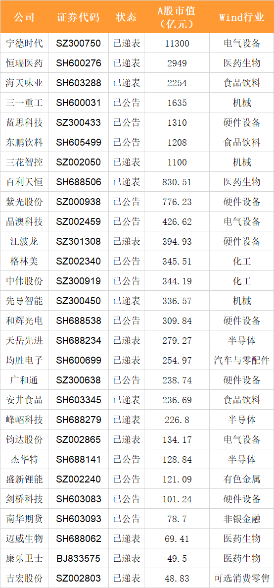 a股上市公司赴港ipo持续升温 28家公司总市值超2.7万亿元