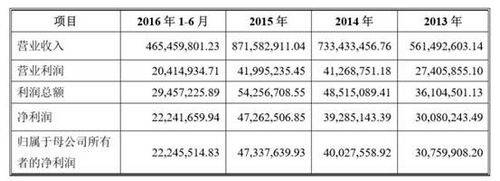 招股书显示,金牌厨柜2016年1-6月营业收入为4.65亿元,净利润为2224万元。2013年-2016年营收分别为5.61亿元、7.33亿元、8.72亿元;净利润分别为3008万、3929万、4726万。