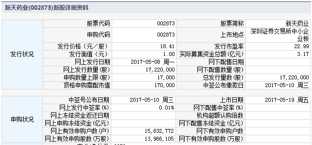 根据交易所公告,贵阳新天药业股份有限公司于2017年5月19日起在深圳证券交易所中小企业板上市交易。