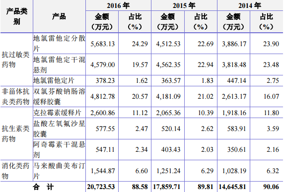 根据招股书披露,普利制药连续两年业绩增长。其2014到2016年度营收分别为1.64亿、2.02亿、2.48亿,净利润分别为3666.5万、5070.1万、6977.5万。