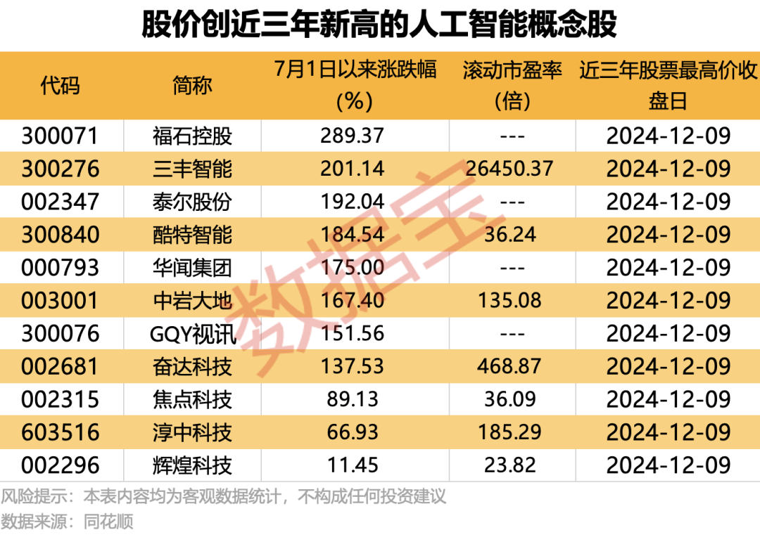 统计还发现,9月以来的人工智能概念股区间涨幅跑赢上证指数的个股占比高达92.4%,其中39只个股在12月创出近三年以来的股价新高。