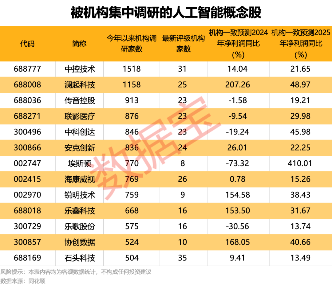 据数据宝统计,截至12月9日,从年初至今,机构调研家数超过100家的股票有132只,其中,中控技术和澜起科技调研总家数突破了1000家,分别是1518和1158家;紧跟其后的是传音控股、联影医疗、中科创达等。