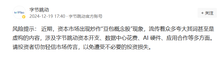 字节跳动发布风险提示!“豆包概念股”迎来一盆“冷水” 超10家上市公司回应无合作