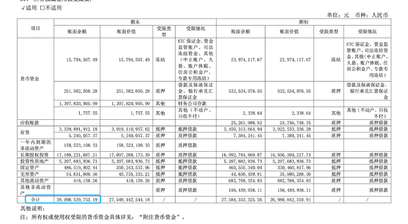 除借定增募资,“东方系”扩张的过程中,还高比例质押融资。截至6月30日,东方集团共有280.99亿元资产处于所用权或使用权受限状态,在同期总资产中的占比达到78.53%。其中大多受限情况是“质押借款”。
