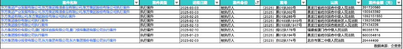 目前,该集团旗下资产也正不断被申请执行。企查查数据显示,2025年1月23日至今,东方集团共有8起案件作为被执行人,案件涉及被执行金额高达61.09亿元。