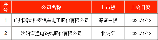深圳证券交易所上市审核委员会定于2025年4月18日召开2025年第8次上市审核委员会审议会议。审议广州瑞立科密汽车电子股份有限公司(下称“瑞立科密”)的首发事项。