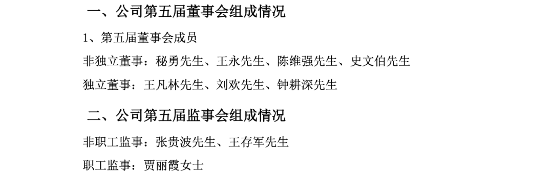值得一提的是,与上一届公司董、监事会成员构成相比,以董事长张成锁为代表的高管团队悉数退出董、监事会。根据公开资料,此次当选的董事会非独立董事中,秘勇现为石家庄国有资本投资运营集团有限责任公司董事长、石家庄常山纺织集团有限责任公司董事长,石家庄北明科技股份有限公司董事长。王永现为科林电气副总经理,主管公司市场营销和市场拓展工作。陈维强现任海信集团控股股份有限公司高级副总裁等职。史文伯现任青岛海信网能总经理、党支部书记。