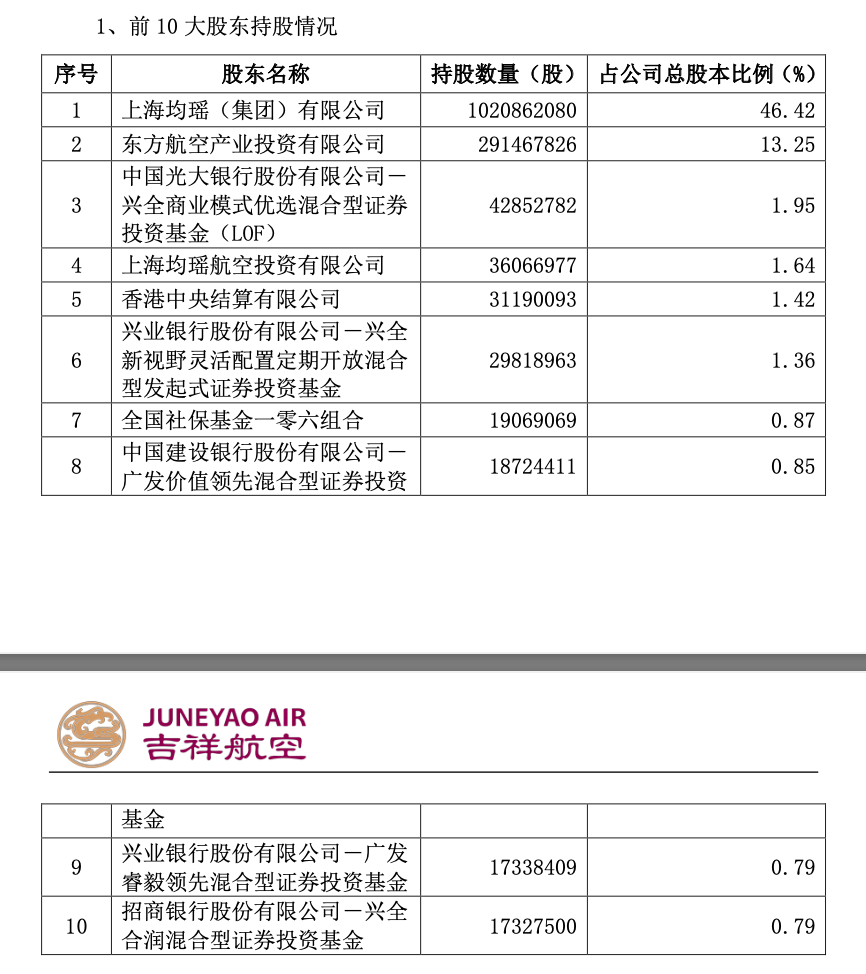 而兴证全球基金谢治宇管理的兴全合润lof则新进吉祥航空前十大流通股东,合计持有1732.75万股。
