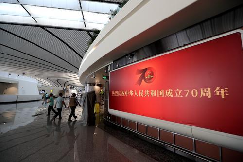 图为机场“喜迎建国70周年”展板一角。东方ic