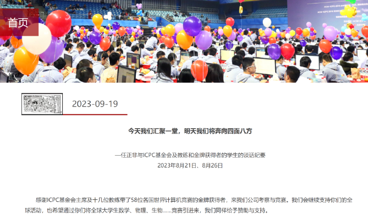 感谢 icpc 基金会主席及十几位教练带了 58 位各国世界计算机竞赛的金牌获得者,来我们公司考察与竞赛。我们会继续支持你们的全球活动,也希望通过你们将全球大学生数学、物理、生物…… 竞赛引进来,我们同样给予赞助与支持。