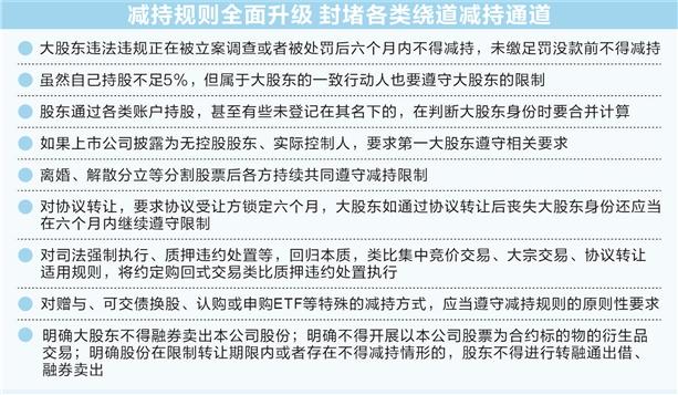同时,围绕近一段时间以来市场反映的突出问题,《减持管理办法》做了针对性调整完善,体现了着眼于“公”、立足于“严”的基调。进一步规范大股东特别是控股股东、实际控制人的减持行为,强化穿透式监管,全面封堵可能存在的规则漏洞,严格防范各类“绕道减持”行为,织密减持制度网。