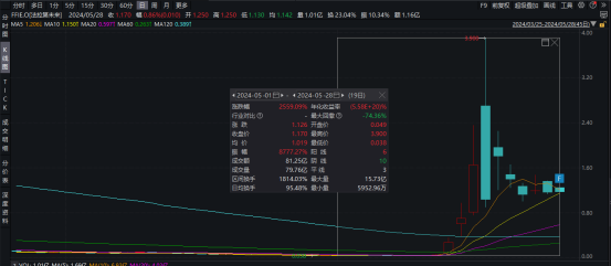 在贾跃亭发布此消息后,有网友调侃道:“以前ppt造车,现在ppt卖车”。然而对比糟糕的营业表现,法拉第未来的股价在进入5月后却出现了不可思议的暴涨,在没有任何利好消息面的情况下,5月13日至5月17日,法拉第未来的股价从0.046美元/股涨到最高3.9美元/股,振幅超过8300%。即使近期出现了回调,截至5月28日美股收盘,5月以来法拉第未来的股价涨幅也超过2550%。