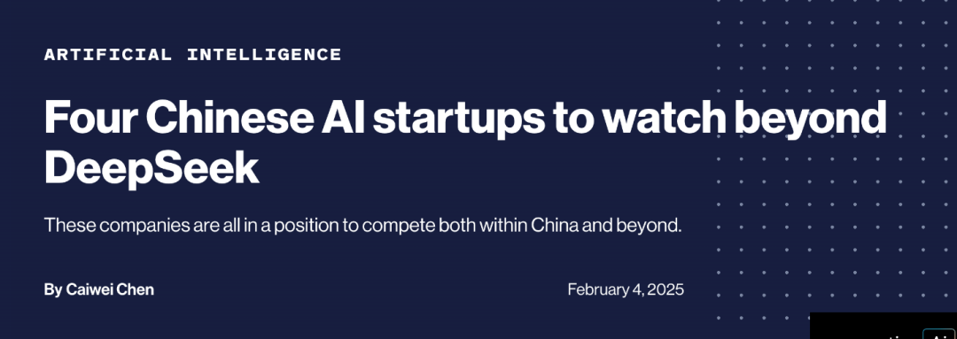 2月4日,《麻省理工科技评论》发表题为“关注深度求索之外的四家中国人工智能初创公司”的文章。《麻省理工科技评论》由麻省理工学院出版,专注于科技新闻、趋势和创新,涵盖多个科学和技术领域。
