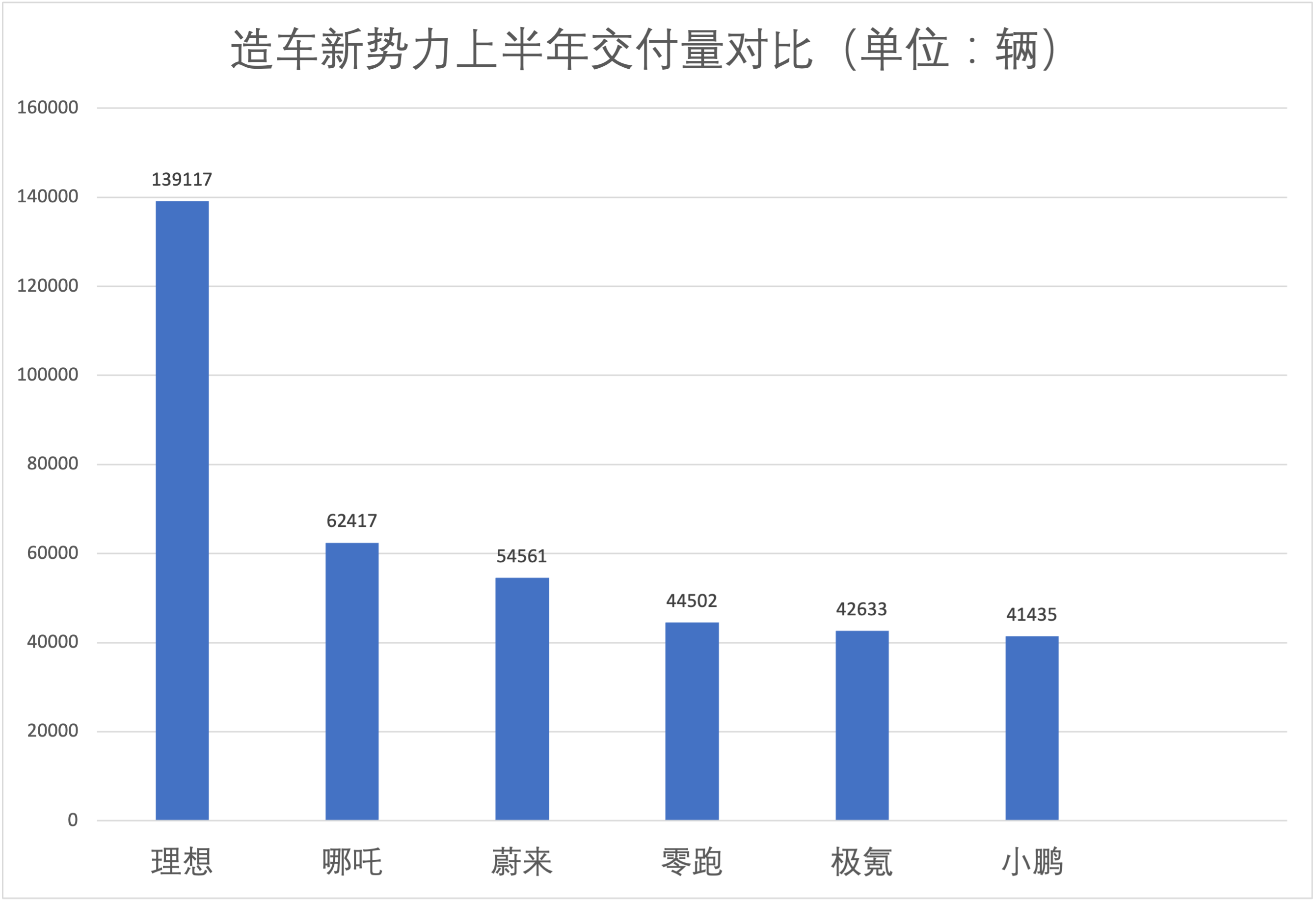 而其他几家造车新势力的交付量,都未能超过理想汽车的一半。