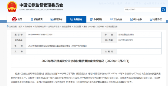 也就是说,大成精密在ipo申报获受理一个月内,被抽中现场检查,之后10个工作日又紧急撤回,总体来说,该公司获受理后一个半月内,其创业板ipo就终止了。