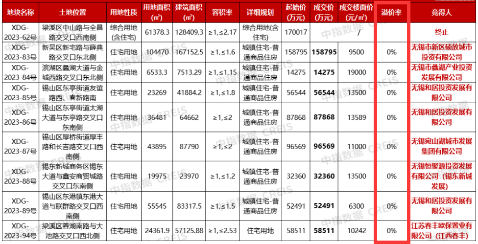 12月14日无锡8宗地块均以底价成交图片来源:中指研究院