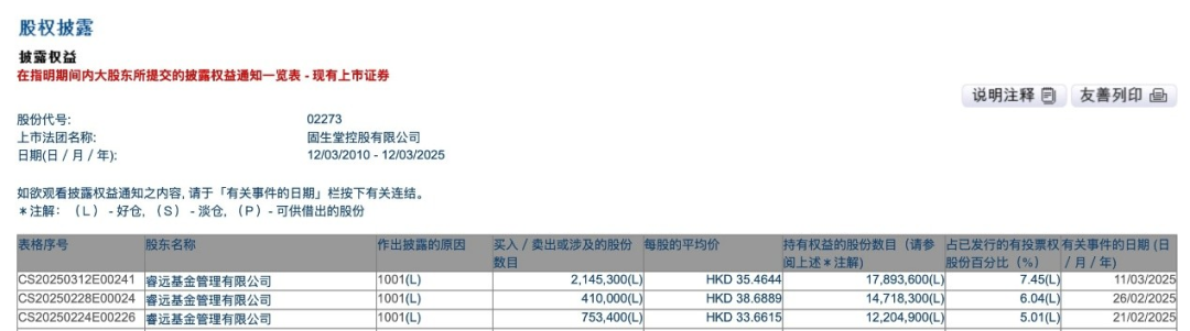 例如,3月11日,睿远基金增持了214.53万股固生堂。2月21日、2月26日,睿远基金就曾分别增持75.34万股、41万股固生堂。3月11日增持后,睿远基金合计持有固生堂的比例由4.70%增至7.45%。