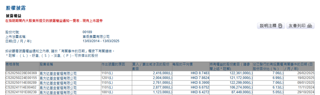 自2024年10月举牌东岳集团之后,今年易方达基金在该标的上已三度调整持仓。1月9日,易方达基金先是增持276.10万股东岳集团,随后2月19日减持200.40万股,2月26日又再度增持241.60万股,目前持股比例已回归7%以上。