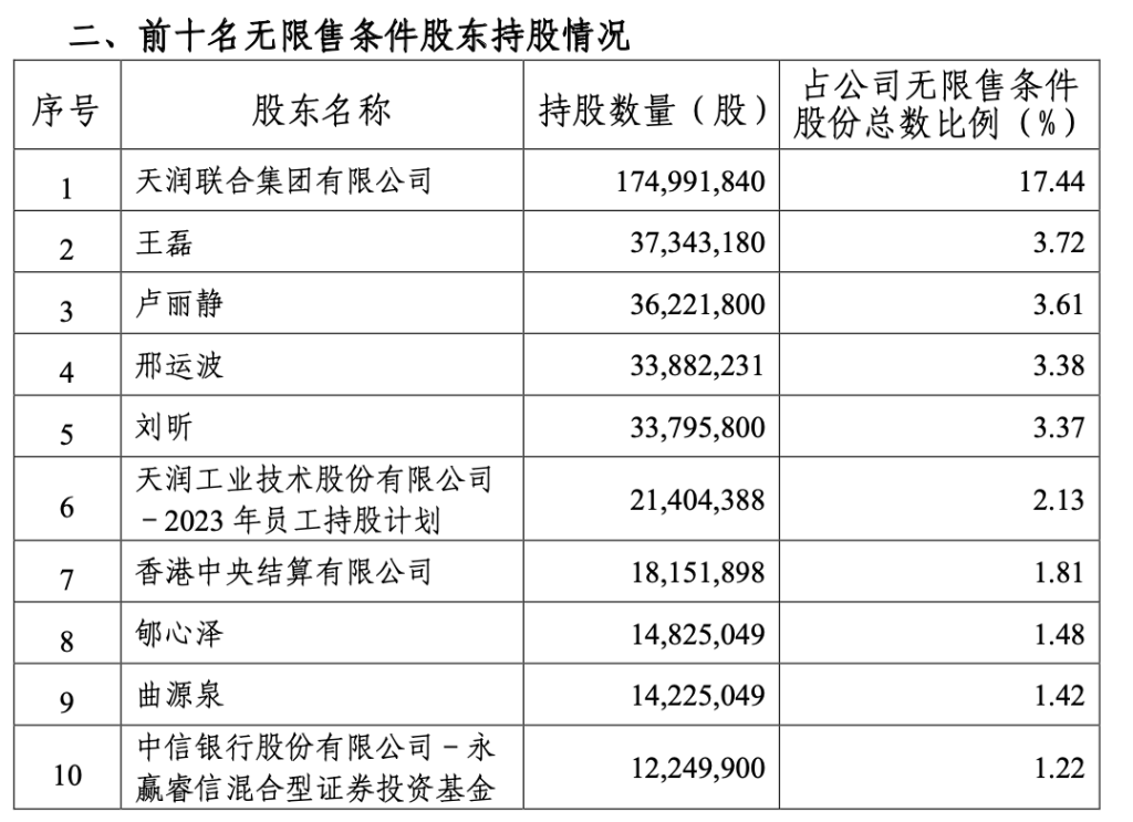 3月12日,天润工业(002283)最新披露回购股份事项前十名股东和前十名无限售条件股东持股情况,截至3月10日,永赢基金首席权益投资官兼权益投资部总经理高楠旗下在管的永赢睿信现身,持股数量合计1224.99万股。