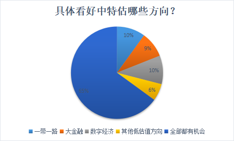 私募排排网调查结果显示,65%的私募认为所有中特估版块均会有投资机会,中特估行情会在版块内持续扩散和轮动;但也有10%的私募相对比较看好一带一路和数字经济;另外有9%的私募看好大金融;6%的私募看好其他低估方向。
