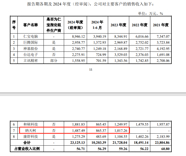 需要注意的是,第二轮问询回复显示,2021年—2023年及2024年上半年,仁宝电脑自身收入呈现持续下降。不过,由于公司获取仁宝电脑新机种的订单,2023年、2024年对其销售收入不减反增。
