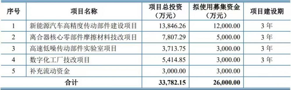 旺成科技此次拟发行不超过2531万股(未考虑超额配售选择权的情况下),发行底价为8.60元/股,拟募资2.6亿元,用于新能源汽车高精度传动部件建设项目、离合器核心零部件摩擦材料技改项目、高速低噪传动部件实验室项目、数字化工厂技改项目及补充流动资金。