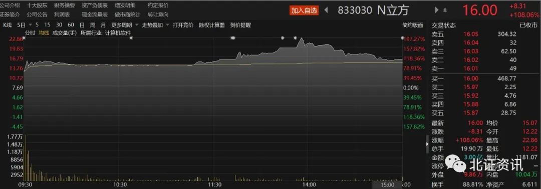 11月2日,北交所迎来第227只股票,立方控股延续近日新股上市首日大涨的态势。